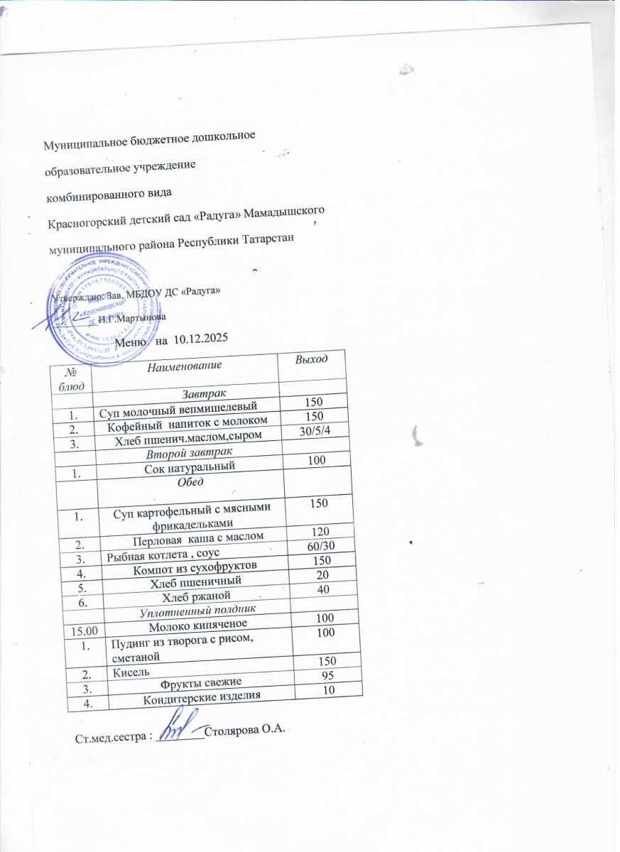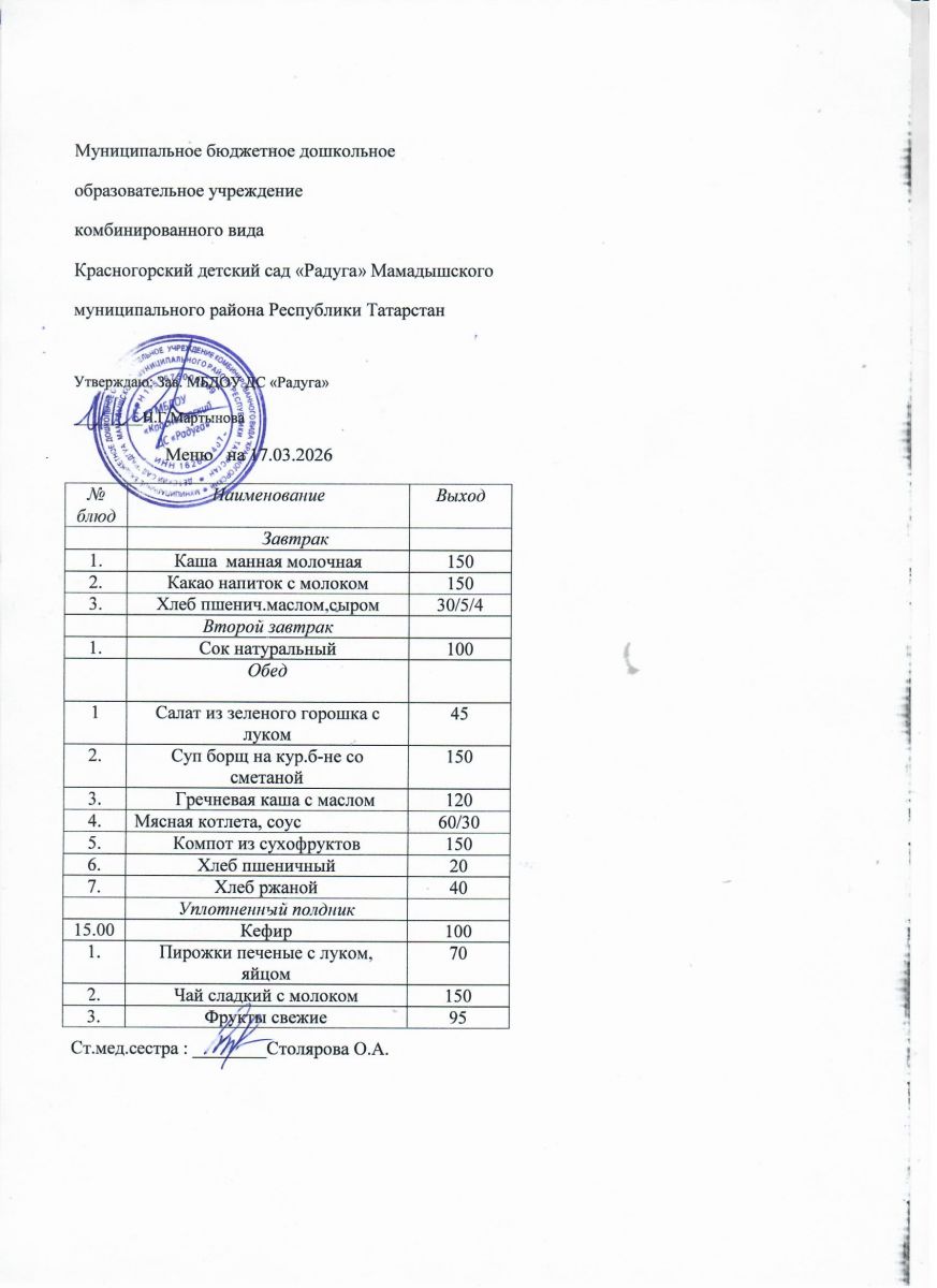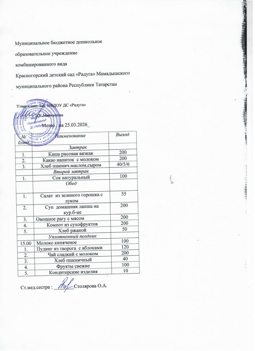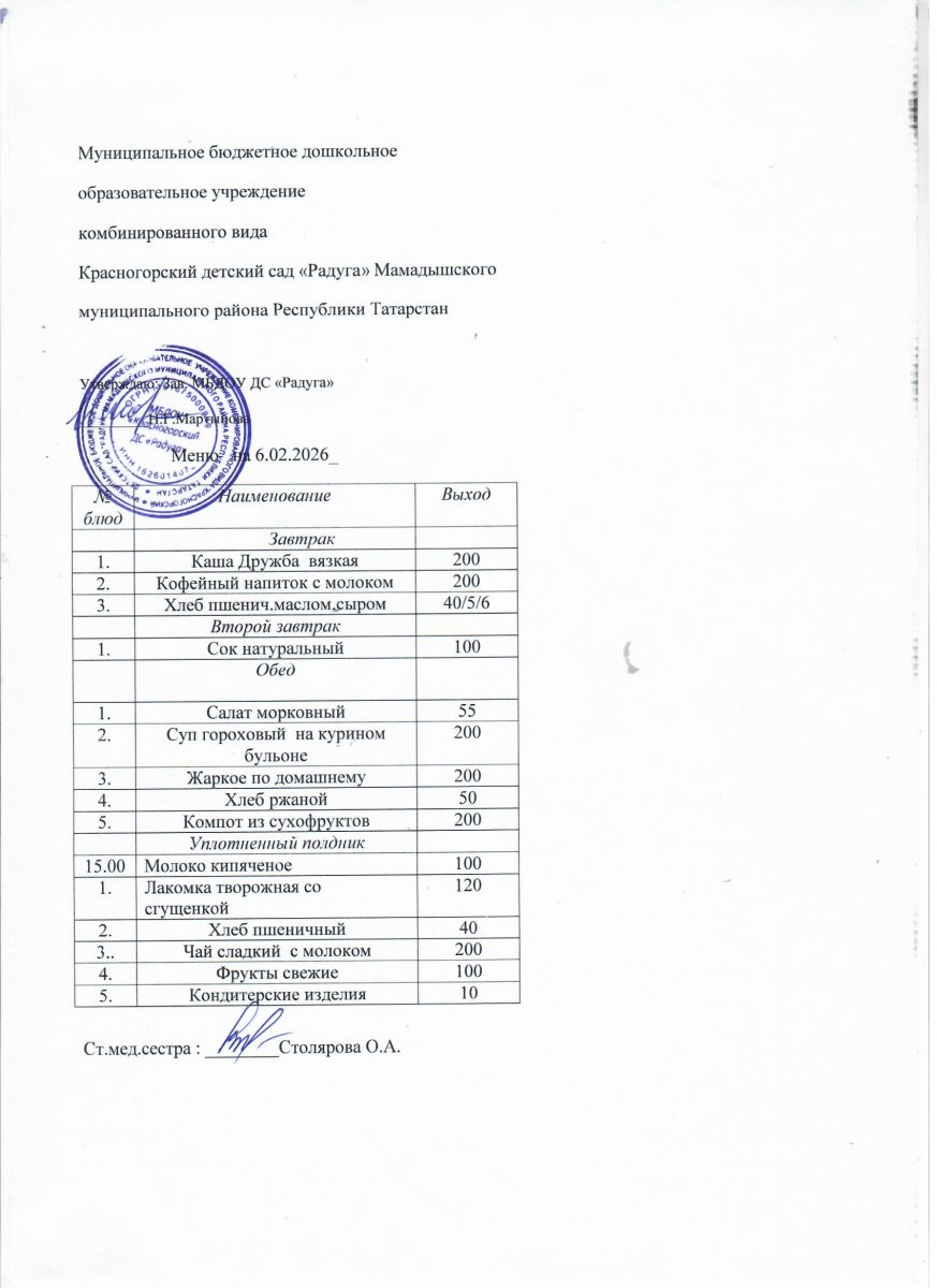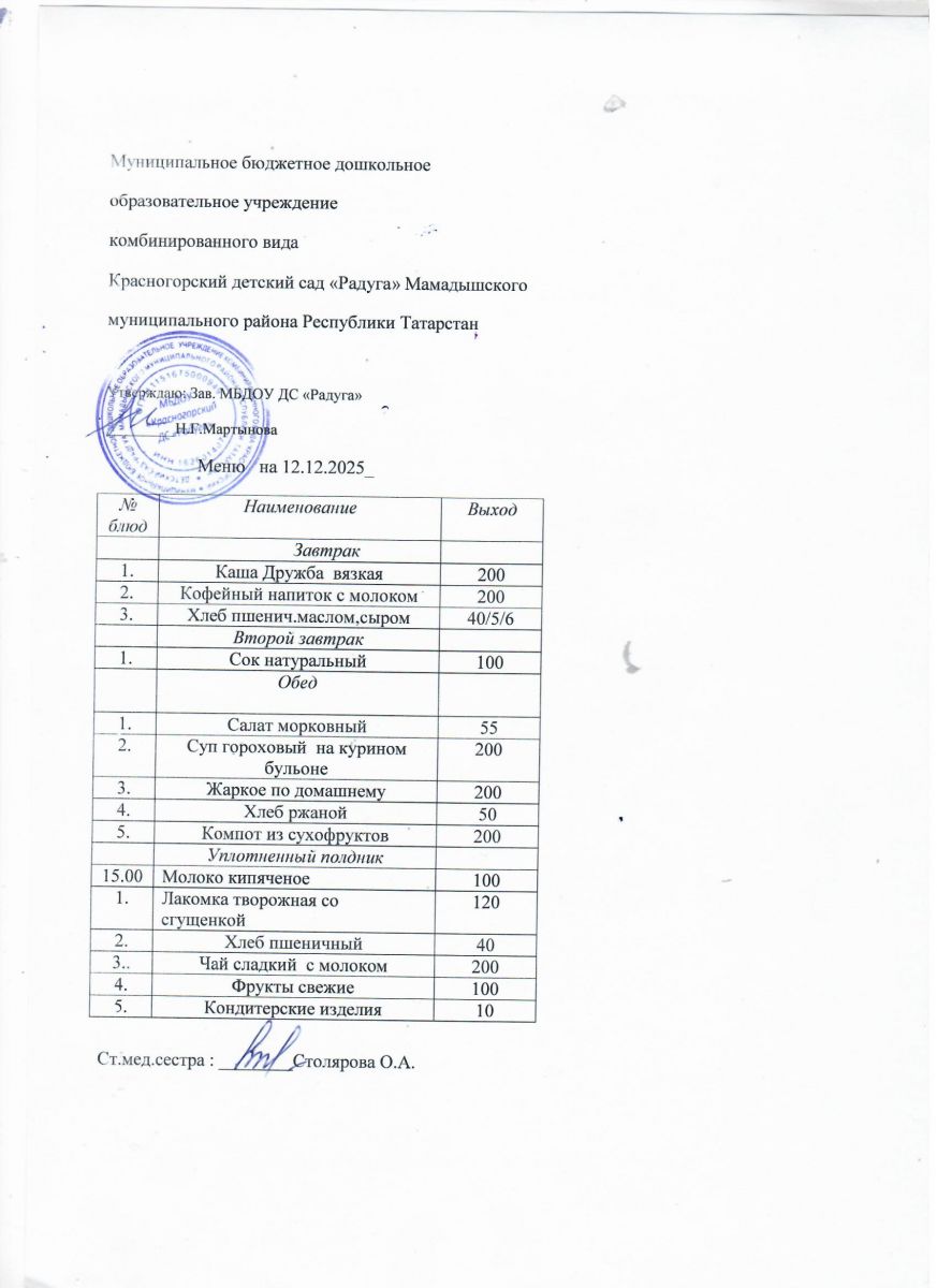 Муниципальное бюджетное дошкольное образовательное учреждение комбинированного вида «Красногорский детский сад «Радуга» Мамадышского муниципального района РТ