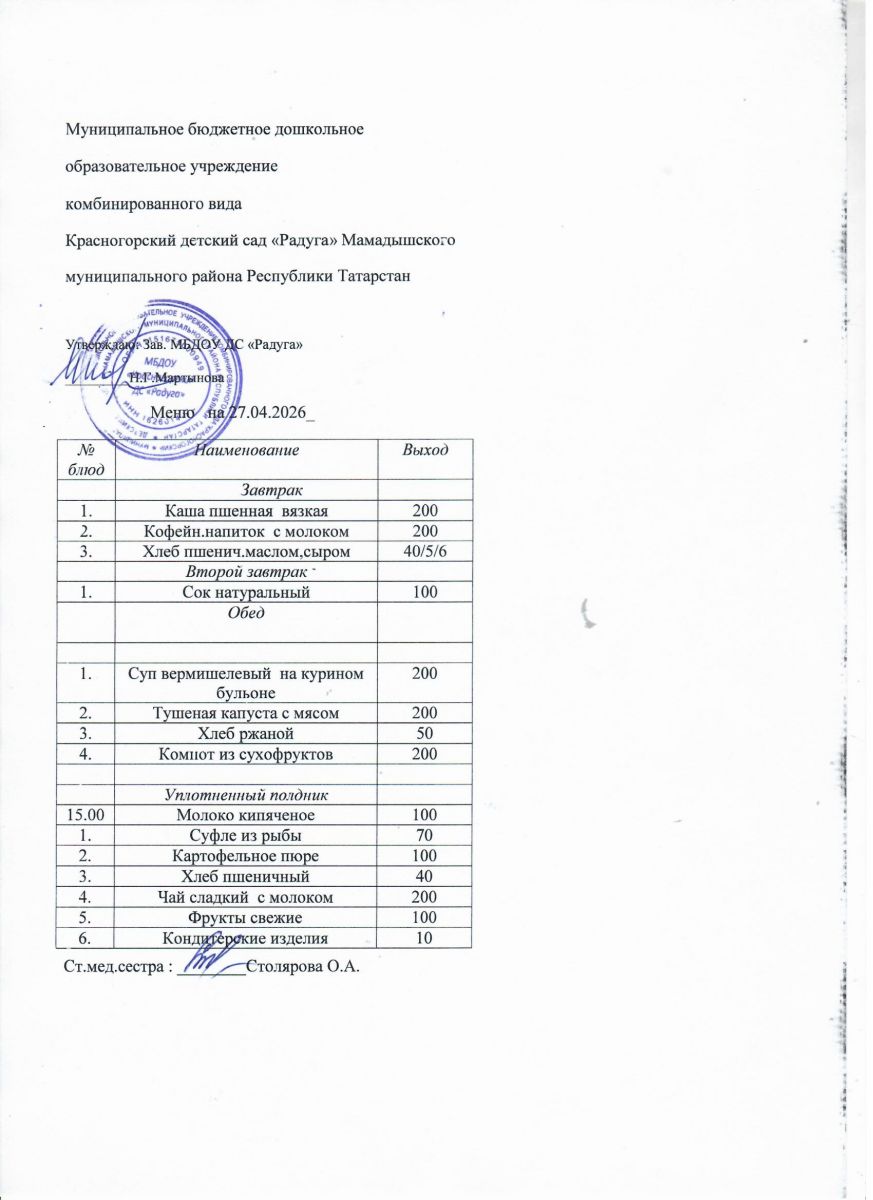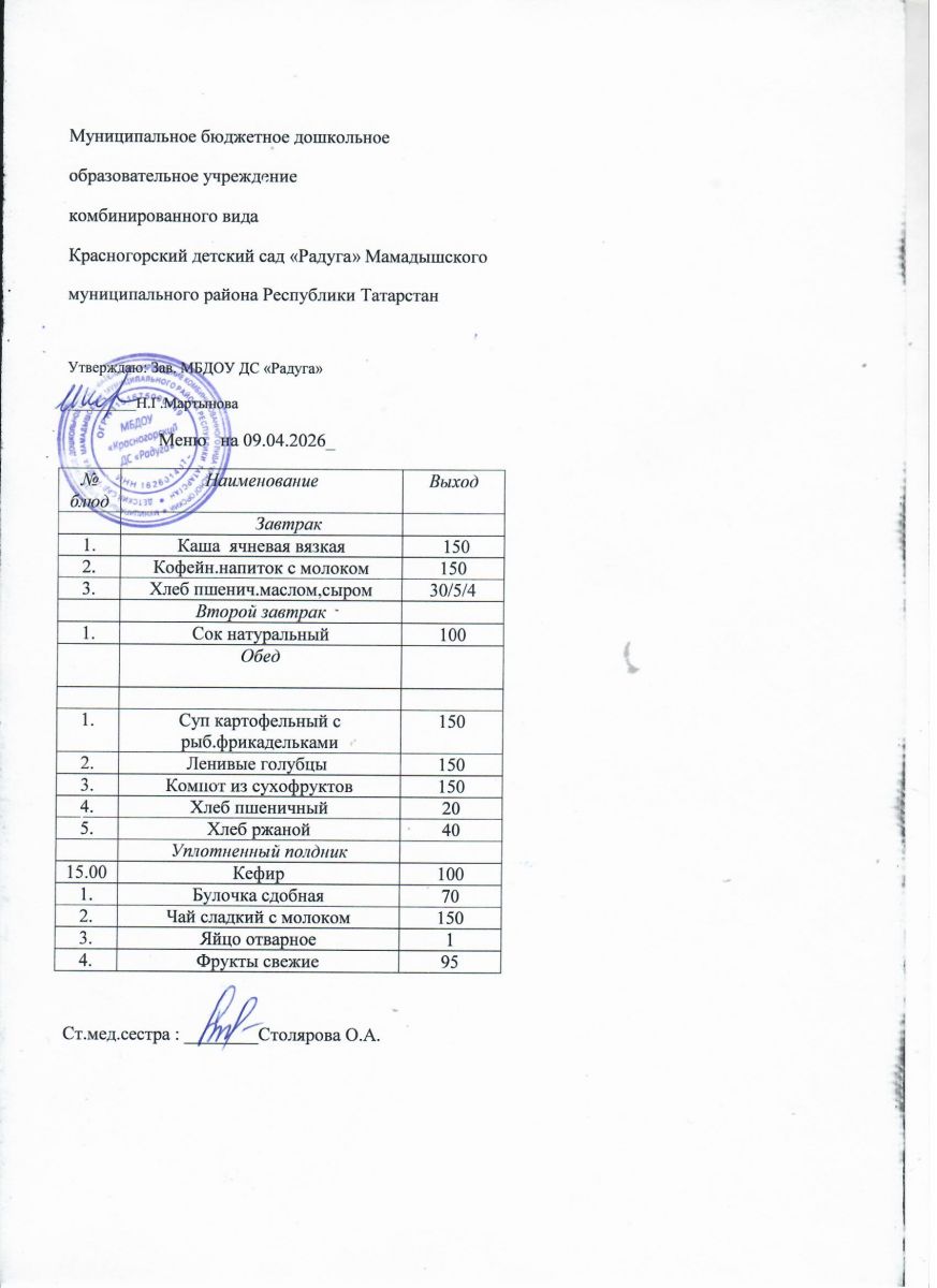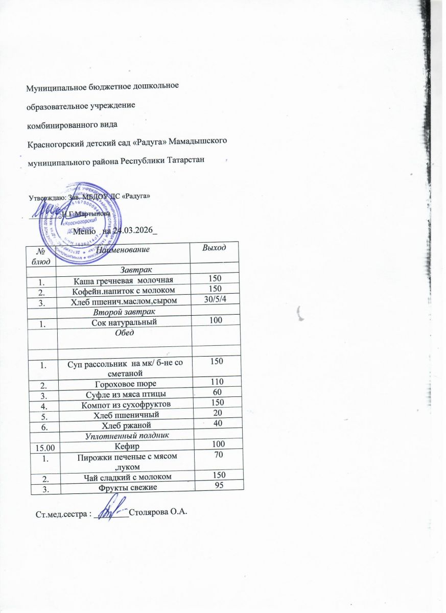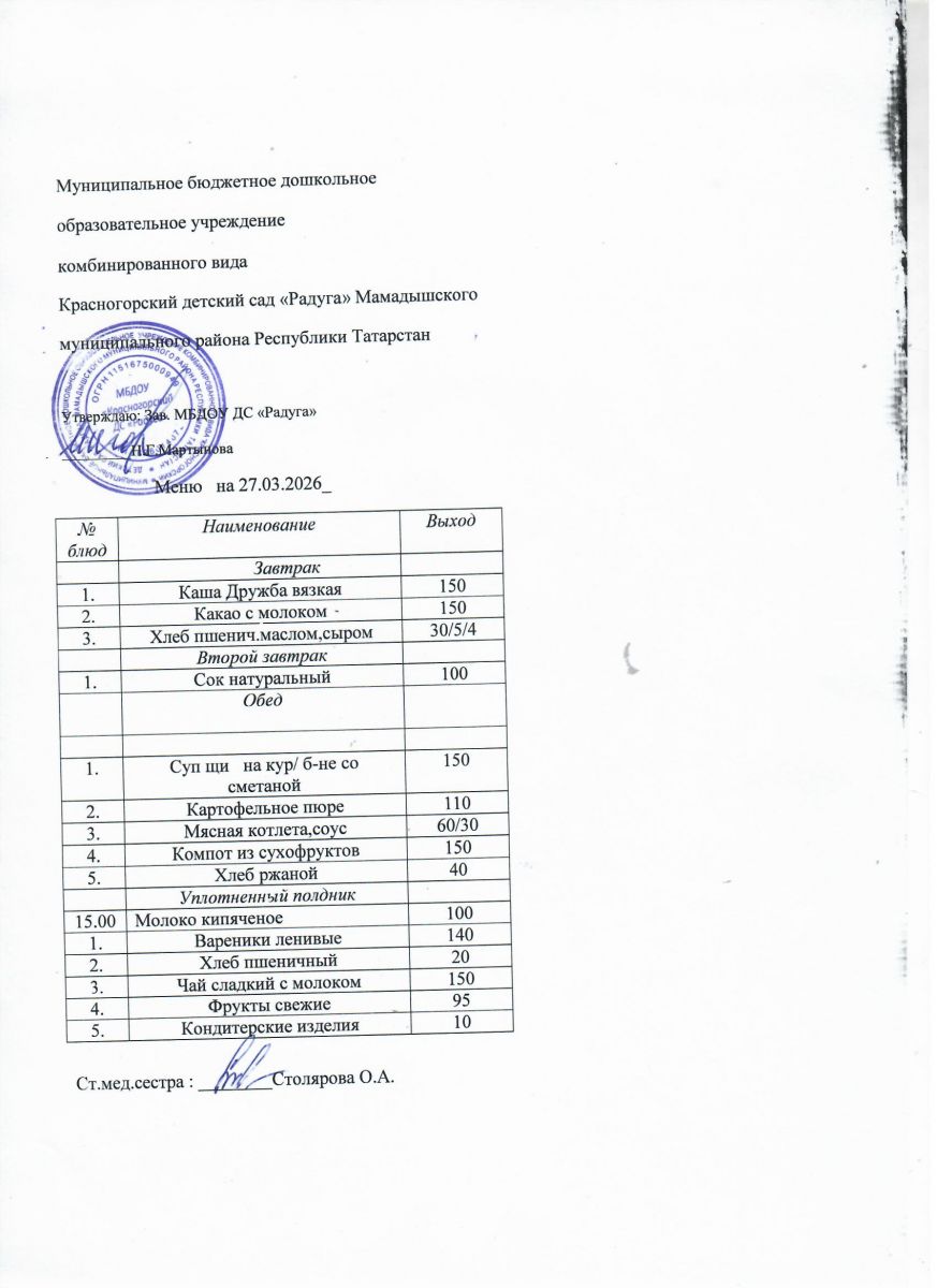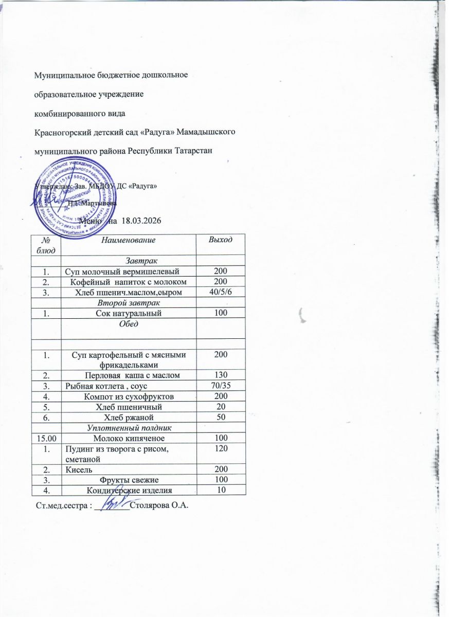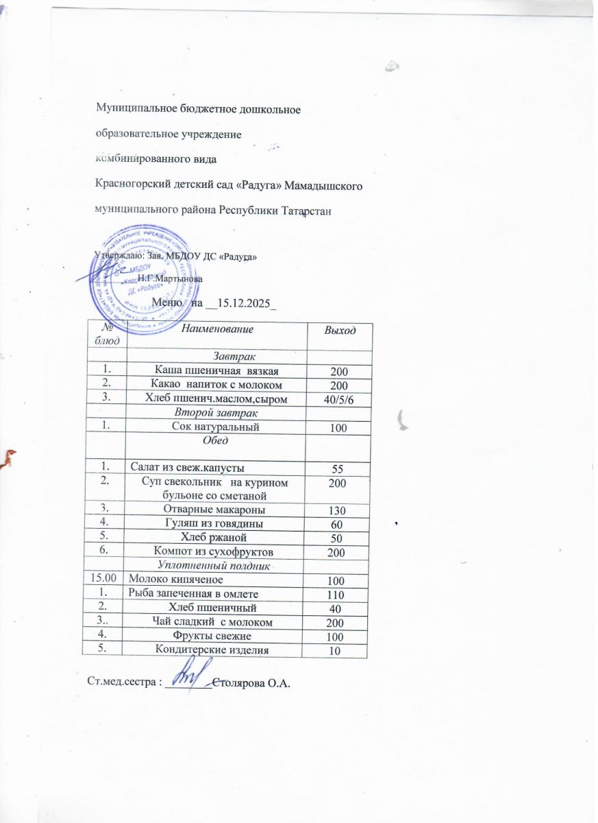 Муниципальное бюджетное дошкольное образовательное учреждение комбинированного вида «Красногорский детский сад «Радуга» Мамадышского муниципального района РТ