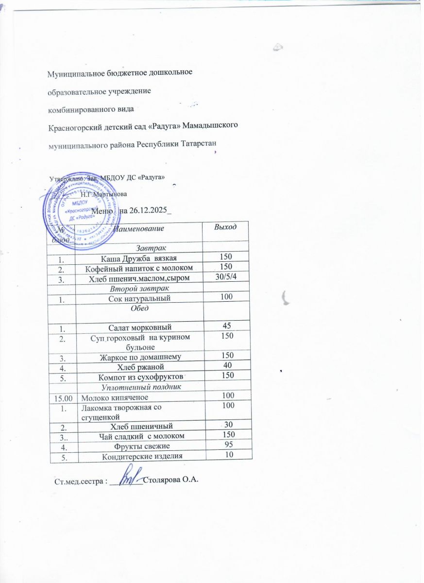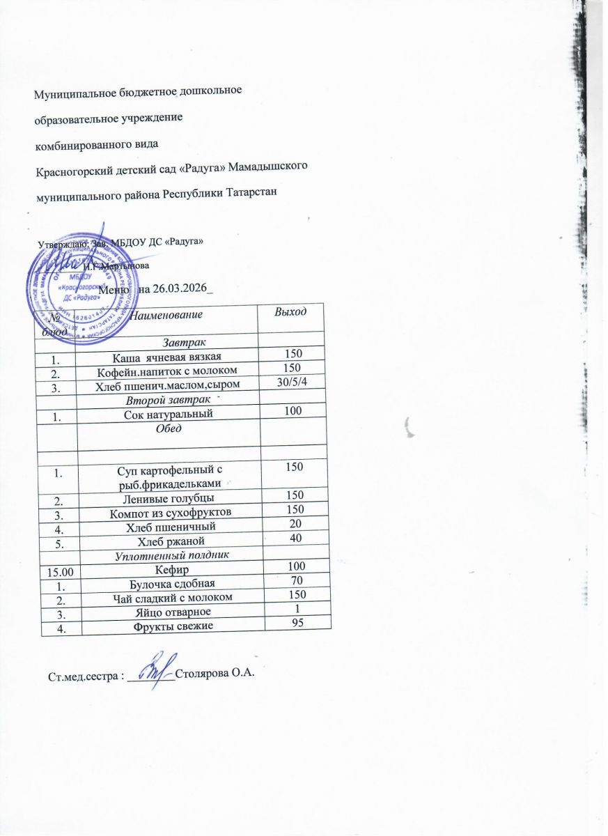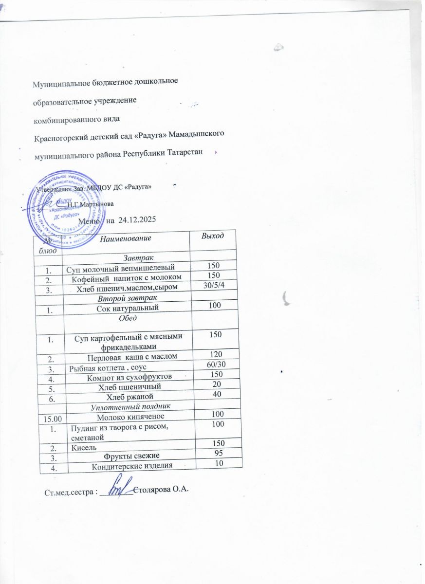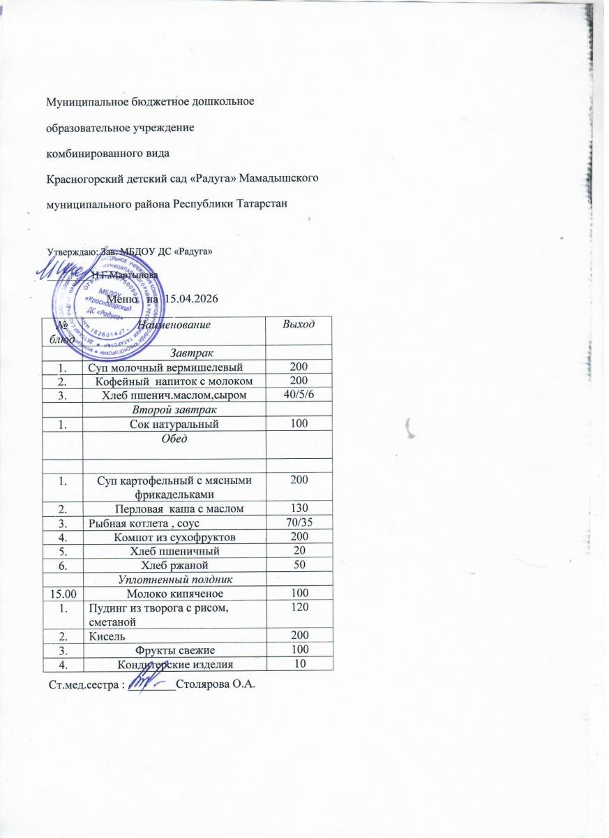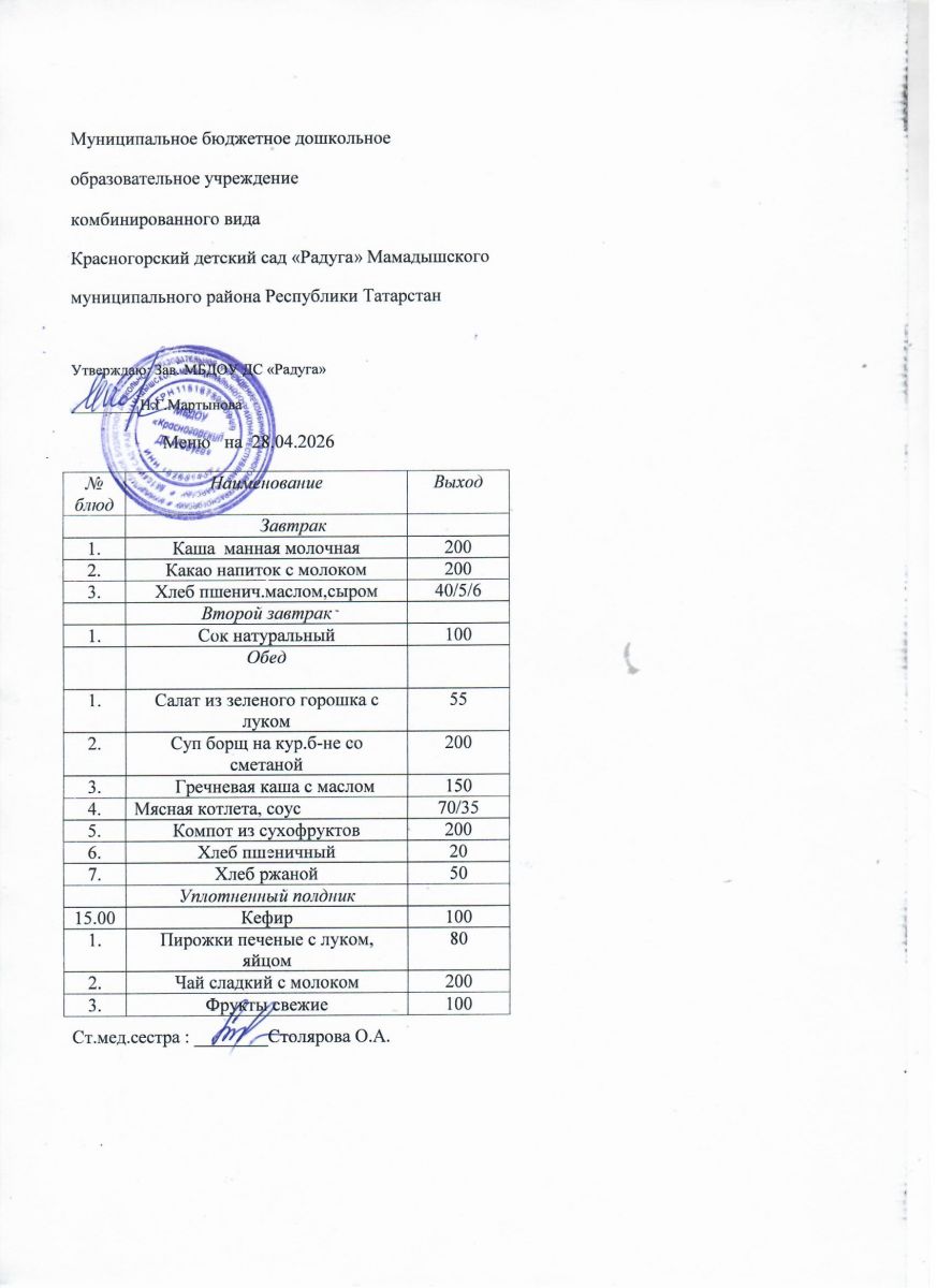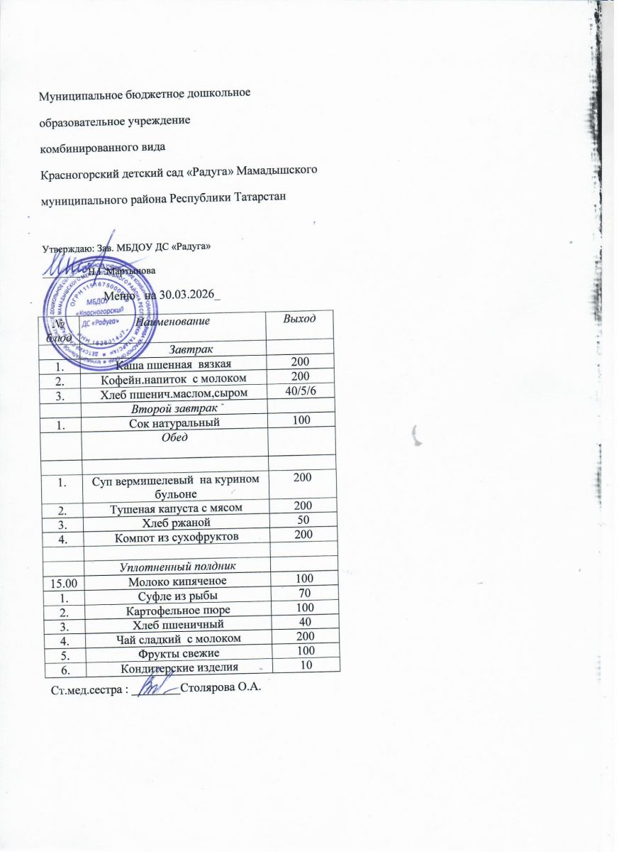 Муниципальное бюджетное дошкольное образовательное учреждение комбинированного вида «Красногорский детский сад «Радуга» Мамадышского муниципального района РТ