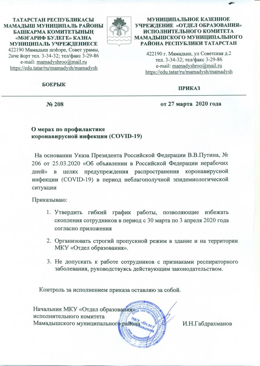 Приказ Министерства образования и науки Республики Татарстан №3260 /20 от 15.03.2020 года