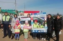 Воспитанники детского сада №5 «Бэлэкэч» совместно с сотрудниками ГИБДД провели акцию «Внимание! На дороге дети!»
