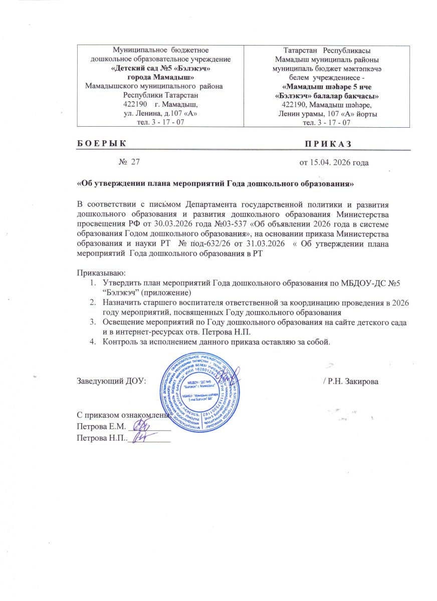 Муниципальное бюджетное дошкольное образовательное учреждение «Детский сад № 5 «Бэлэкэч» города Мамадыш» Мамадышского муниципального района Республики Татарстан / Татарстан Республикасы Мамадыш муниципаль районы муниципаль бюджет мәктәпкәчә белем учреждениесе - «Мамадыш шәһәре 5 нче «Бәләкәч» балалар бакчасы»