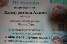 "Мой папа лучше всех" региональ иҗади конкурсында Халмуратова Әдилә дипломга ия булды.