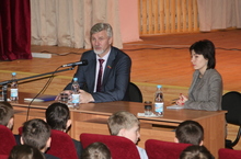 Сегодня нашу школу посетил депутат Государственного Совета Республики Татарстан Глушков Геннадий Николаевич. Он провел Парламентский урок по теме"Государственные символы РФ и РТ" для учащихся 5-10 классов. Депутат рассказал о флаге, гербе,гимне Татарстана и России, о процедуре принятия депутатами новой редакции гимна нашей республики. Так же учащимся был продемонстрирован видеоролик о нашей замечательной Родине. Отрадно, что звуковое сопровождение ролика было основано на мелодии гимна РФ, всех присутствующих в зале охватило чувство гордости и патриотизма. Затем Геннадий Николаевич ответил на вопросы учеников, в атмосфере држеской беседы рассказал ребятам о своей работе, о том как его выбирали на пост депутата, какое участие он принимает в комиссии по подготовке к летней Универсиаде, пожелал ученикам определиться с выбором профессии, чтобы в дальнейшем стать настоящими гражданами страны. К тому же депутат посетил уроки, пообщался с учениками, которые занимались на кружках "Экология", "Медиацентр", "Лего-робот". «Выражаем Геннадию Николаевичу огромную благодарность за замечательный парламентский урок. Было очень интересно»- сказали ученики МБОУ «СОШ №3 г. Мамадыш» местной телерадиокампании.