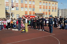 Спасатели продемонстрировали учащимся оборудование, работу пожарной машины. Организовали эстафету среди учащихся, которая состояла из 4 этапов: примерка формы МЧС, работа с концом Александрова, спасательный круг, транспортировка пострадавшего. Затем показательные выступления самих спасателей. Ребятам очень понравилось.