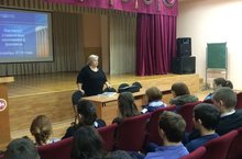 В целях профориентационной работы с учащимися школы 9-11 классов была организована встреча с Хаметовой Н. Г., представителем Института экономики управления и финансов К(П)ФУ. Она рассказала учащимся о факультетах, условиях поступления и подачи документов в Вуз, ответила на многочисленные вопросы учащихся.
