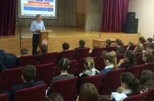 Сегодня 21 сентября 2016 года в актовом зале был проведен урок безопасности на тему: «Профилактика предупреждения травматизма учащихся на железнодорожном транспорте».