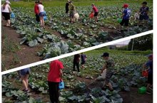 На очередную отработку пришли ребята на пришкольный участок. Полив капусты.