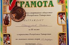 Шакирзянов Ислам, ученик 3б класса занял третье место в первенстве Республики Татарстан по лыжным гонкам(по слуху), дистанциия 5 км. Поздравляем!