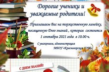 Приглашаем Вас на торжественную линейку, посвященную Дню знаний, которая состоится 1 сентября 2021 года в 10.00 ч.