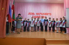 Сегодня прошел торжественный Сбор дружины, посвященный Дню народного единства. На нем ребятаоб истории праздника, о государственных символах РФ, посмотрели видеоролики на эту тему. После чего состоялось торжественное принятие учащихся 5а класса в детскую организацию "Наследники Татарстана". Они дали торжественное обещание, рассказали стихотворения. Учащиеся 8 класса повязали им трехцветный галстук. В конце все взялись за руки и произнесли слова "Пока мы едины - мы непобедимы".