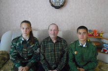 2 октября педагог-организатор Гимадиева М.Р. и педагог дополнительного образования Куренин Е.В. с кадетами 7Б класса Валиуллиным Ильсафом и Кекишевой Настей посетили ветеранов Кульбову Н.И., Набиуллина Г.Ш., Иванова М.К., Маратканова В.Н., поздравили их с Днем пожилого человека, вручили открытки и гостинца.