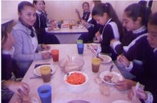 С начала учебного года организовано горячее питание учащихся в школьной столовой. 10 сентября в меню курица охлажденная, рожки отварные, салат из свежей моркови, чай с сахаром, хлеб йодированный. Кадеты получают дополнительное питание. Сегодня для них приготовлен плов с изюмом, чай с сахаром, хлеб. Питание качественное. Повара готовят вкусно. Качество приготовления блюд проверяет бракеражная комиссия.