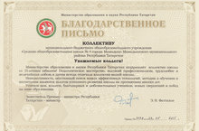 Фаттахова Э.Н., заместитель Премьер-министра РТ, министр образования поздравил нашу школу с юбилеем и вручил нашему коллективу благодарственное письмо.