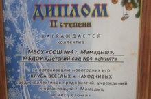 Наша школа награждена дипломом 2 степени за организацию новогодних игр Клуба веселых и находчивых среди коллективов предприятий, учреждений и организаций г. Мамадыш "Смех у елочки". Поздравляем, желаем дальнейших побед!