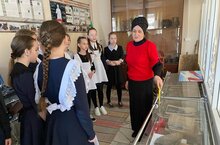 Так же Рамзия Нурулловна, руководитель школьного музея, познакомила учащихся 5 -х классов с фондов школьного краеведческого музея.