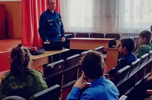 3 октября прошла встреча с сотрудниками МЧС. Спасатель I класса Тюкменов Д. В. провел беседу с учащимися 5 классов на тему «Гражданская оборона РФ». Сотрудник МЧС напомнил о мерах безопасности в осенний период.