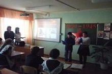 Литературно-музыкальную композицию, посвященную 70-летию Дня победы, организовали учителя русской литературы и учащиеся 7-8 классов в рамках предметного месяца и цикла мероприятий "Великая победа Великой страны".