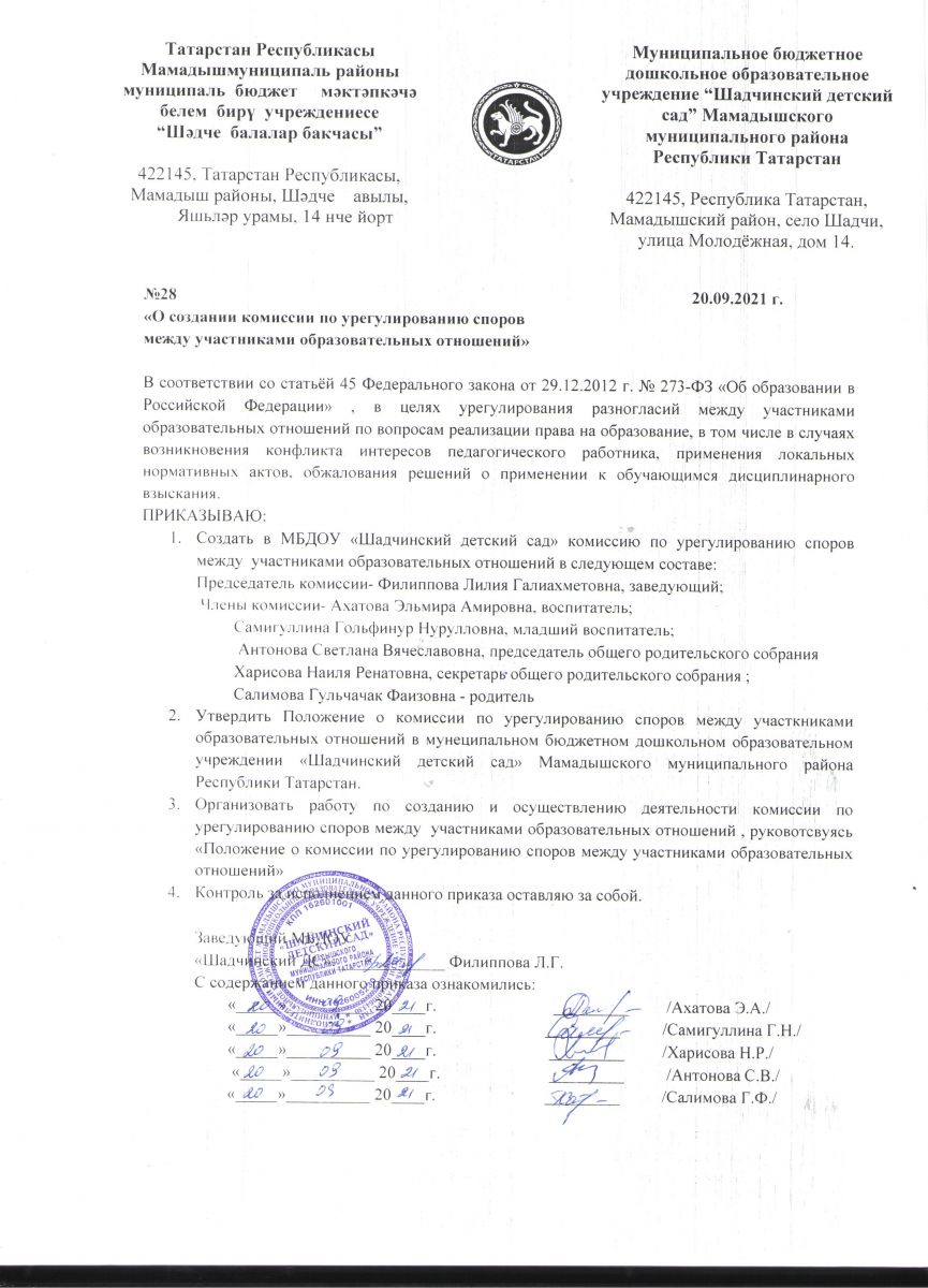 Муниципальное бюджетное дошкольное образовательное учреждение «Шадчинский детский сад» Мамадышского муниципального района РТ/ТР Мамадыш муниципаль районы муниципаль бюджет мәктәпкәчә белем бирү учреждениясе "Шәдче балалар бакчасы"