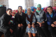 (Рәсемдә 8 нче класс укучылары тыл хезмәтчәне- Шафикова Бибинур апа янында)