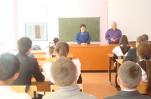 Район прокуроры ярдәмчесе- Әлфия Хәлимовна Корчагина белән югары сыйныф укучылары очрашты.