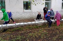 Мәктәп тирәсен агач яфракларыннан чистарту буенча өмә уздырдык.
