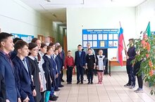 Әлеге матур башлангыч безнең мәктәптә дә уздырылды. Дәүләт байраклары күтәрелде.Укучылар Россия һәм Татарстан гимннарын җырладылар.