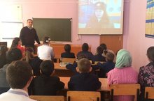 Район башлыгы Иванов А.П. мәктәп укучылары белән "Тормыш дәресләре" уздыра. Шулай ук әлеге очрашуда авыл җирлеге башлыгы Хасанов Б.Ф. катнашты.