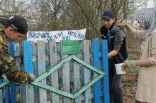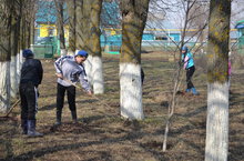 Мәктәпнең әйләнә-тирәсен читарту өмәсендә актив катнашабыз. Экологик айлык кысаларында башкарылган эшләребезнең берсе.
