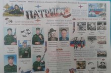 Ватанны саклаучылар көненә багышланган стена газетасы. Укучылар һәм ОБЖ укытучысы И.Г. Шакирзянов иҗаты