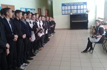 Мәктәптә белем алучы укучы егетләрне һәм укытучы ир-егетләрне бәйрәм белән котлап, укучы кызлар концерт куйды. Фотода Таңсылу Мухлисова