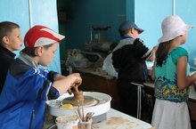 Лагерьда ял итүче балалар балчыктан чүлмәк ясау серләренә төшенәләр.