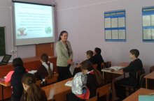 Мәктәпнең биология укытучысы Фасхутдинова Н.А.укучылар белән кошлар темасына әңгәмә уздыра.
