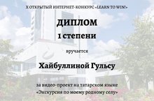 "Туган авылым буенча экскурсия" татарча видеопроектлар конкурсы җиңүчесе 16.11.2020