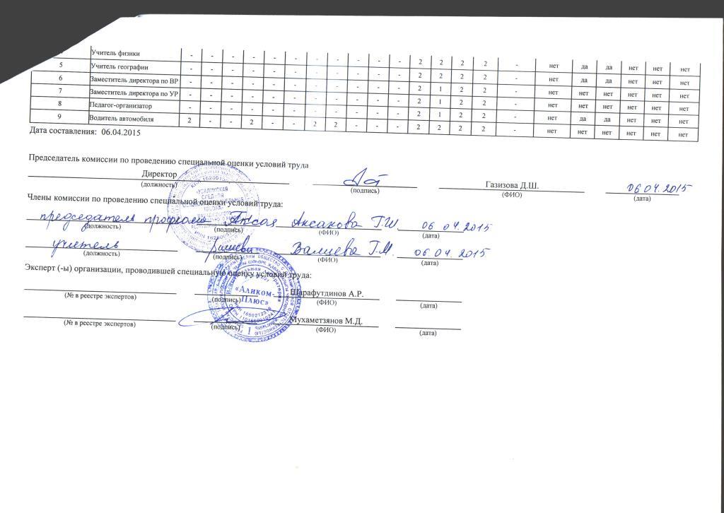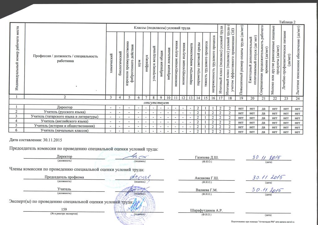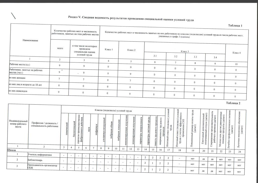 Сводные ведомости результатов проведения специальной оценки условий труда