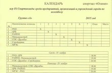 Календар игр IX Спартакиады среди предприятий, организаций и учреждений города по волейболу, 2015г. 18.11.2015
