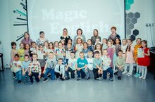 в рамках «Недели английского языка» прошел районный конкурс чтецов на английском языке «The Beauty of English Poetry», где воспитанники кружка "Magic English " показали свои знания на практики .Дети провели время весело и с пользой.Программа мероприятия включала в себя-игры,конкурсы,песни,танцы на английском языке.
