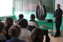 Прокурор ярдәмчесе Аскаров Л.К. һәм өлкән участковый полиция майоры Зигангараев Р.М. белән очрашу булды. Алар "Жизнь без наркотиков!" дигән темага чыгыш ясадылар.