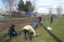 Укучылар Сабантуй мәйданына авыл советы рәисе ярдәме белән сирень, миләш, каен, тирәк агачлары утырттылар.