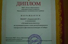 Республикакүләм театр фестиваль-конкурсының муниципаль этабында Әбүзәров Илназ белән Залялиева Зилә Әби һәм Бабай ролендә "Иң яхшы башкаручы" номинациясендә җиңү яуладылар.