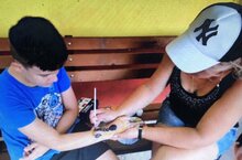 Сегодня в дворовом лагере дети играли в подвижные игры, рисовали , плели браслеты и запускали роботов.