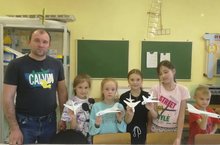 В "Центре детского творчества" с воспитанниками объединения "Авиамоделирование" под руководством педагога Васильева О.В. прошёл мастер-класс по изготовлению простейшей модели самолета «МИГ-15» из потолочный плитки.