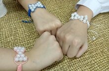 В Центре детского творчества в объединении "Макраме", воспитанники под руководством педагога Ландыш Солтановна, сплели из ниток с бусинками браслеты ко Дню Матери!