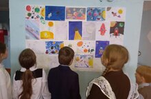 В школе состоялась выставка рисунков учащихся «Рисуем космос».