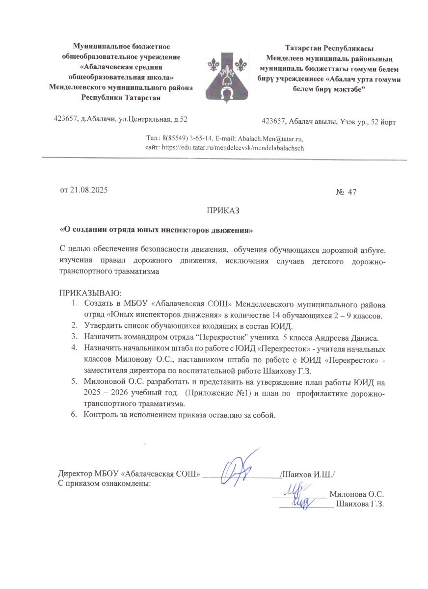 2. Приказ о создании отряда юных инспекторов движения на 2025-2026 учебный год