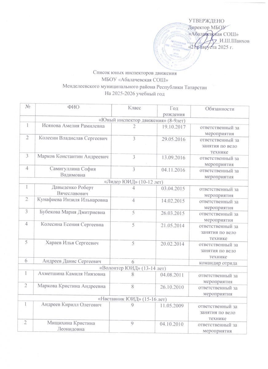 3. Приказ о назначении ответственных лиц за работу отряда ЮИД на 2025-2026 учебный год