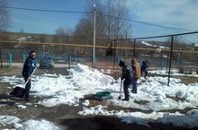 Совсем скоро наступит настоящая весна, а пока учащиеся средних классов и педагогический коллектив вышли на средник по весенней очистке территории школы и памятника ВОв...