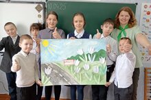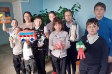 В завершении мероприятия школьники сделали плакат-аппликацию с изоюражением родной деревни и подснежников.