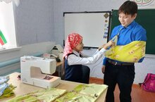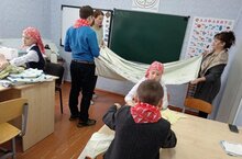 В завершении недели "Мы за раздельный сбор" экокоманда Брюшлинской школы подготовила ветошь для военных санчастей, а из крепкого материала раскроила и подготовила заготовки для медицинского текстиля
