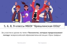 20 января в МБОУ "Брюшлинская ООШ" прошел очередной Урок цифры под названием "Технологии, которые предсказывают погоду", в котором ребята узнали, из чего состоит процесс создания прогноза погоды — от сбора метеорологических данных до корректирования готового прогноза, узнали насколько сложно может быть прогнозировать погоду даже на один день, а также поняли, как работает искусственный интеллект и чем он помогает метеорологам...